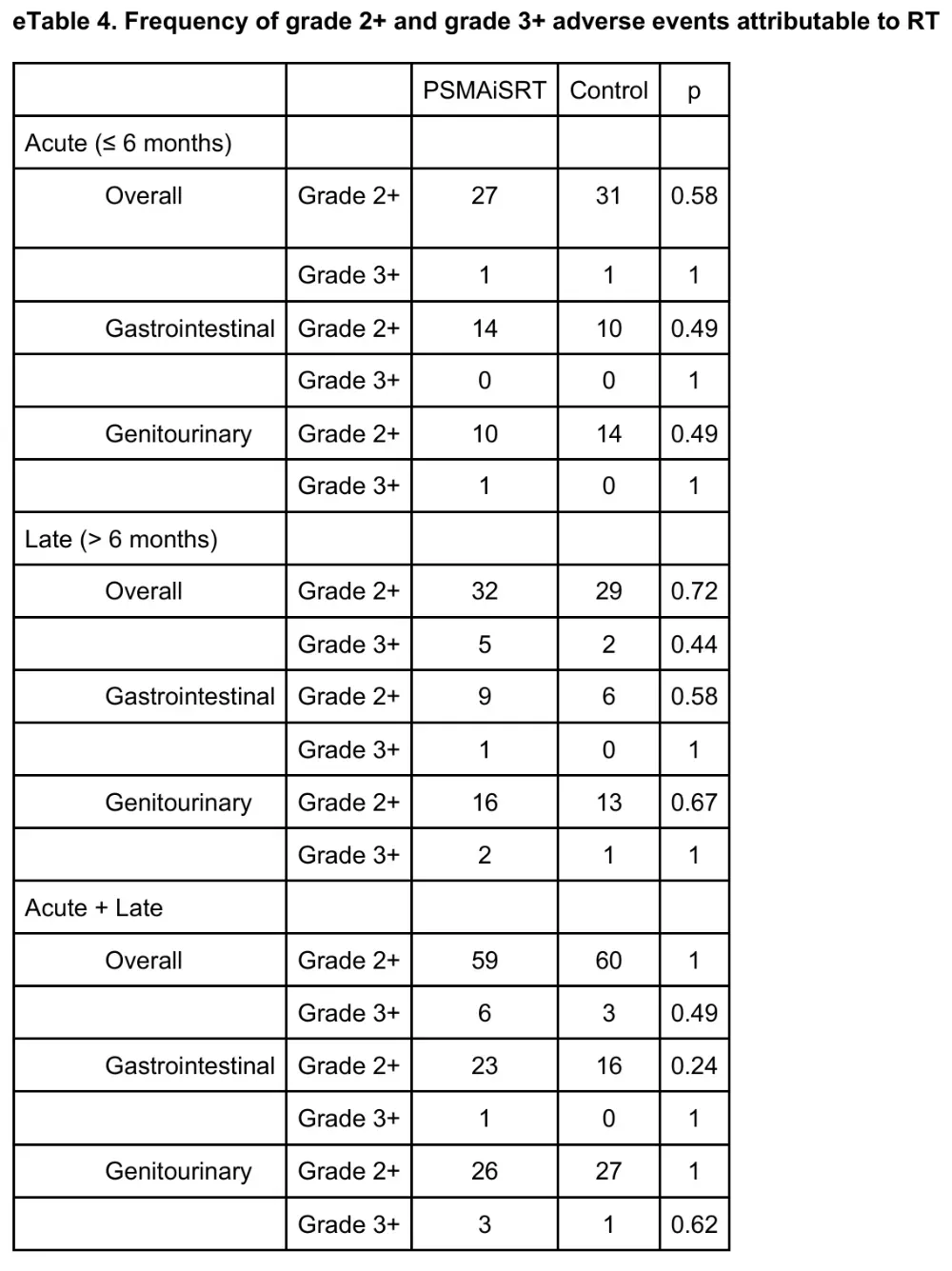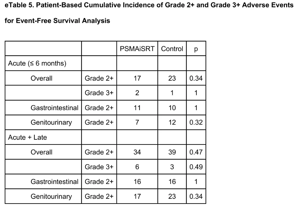 依方案仅记录常规影像证实的远处转移,对照组4例,实验组5例;死亡各1例,均与前列腺癌无关。作者提醒,RP后低PSA队列的转移与死亡事件天然稀少,需更长时间才能看到生存差异,现阶段可把FFS与TFS作为合理替代终点。