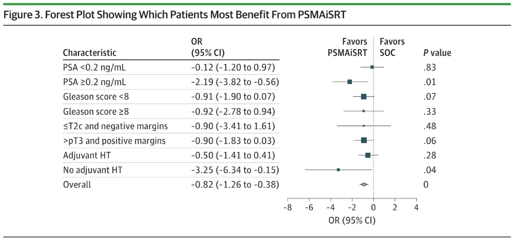 PSA≥0.3 ng/mL亚组获益放大,图2森林图左支