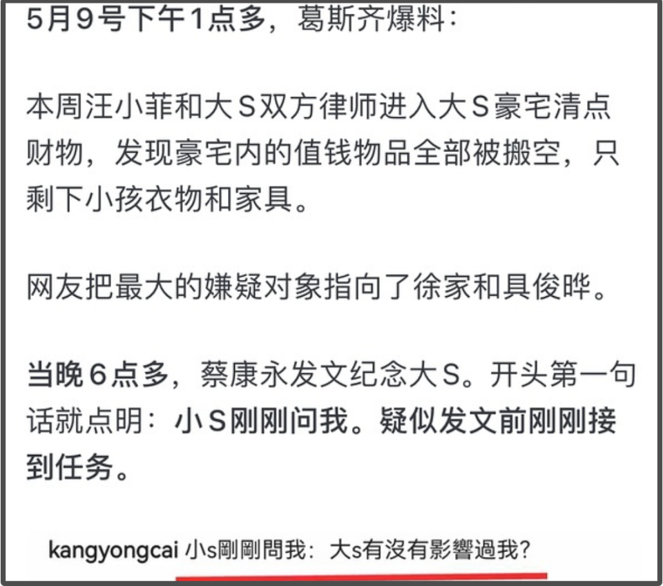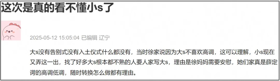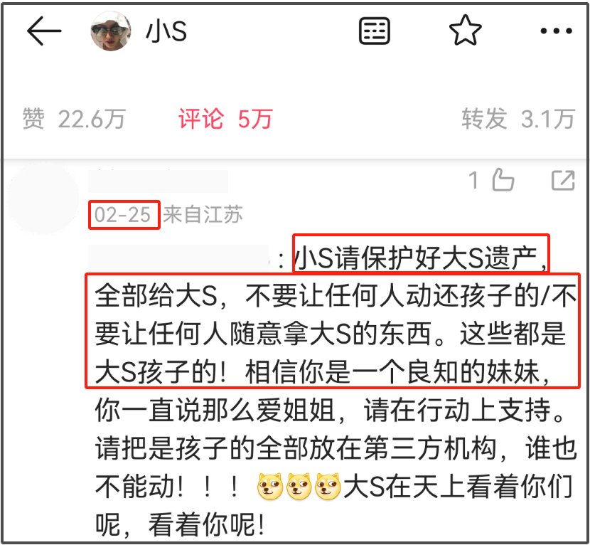 二月那会儿就有热心网友提醒小S照看好外甥的遗产,可惜人家早就不看内地账号了。