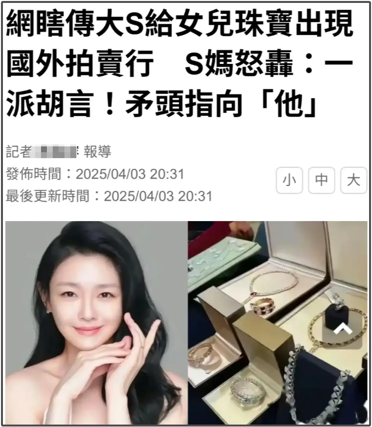 更蹊跷的是,S家之前还辟谣过大S珠宝被拍卖的传闻,如今面对沸沸扬扬的遗产失踪疑云反倒装起了哑巴。网友们急得直跳脚:这都不报警,是等着贵重物品自己长腿回来吗?
