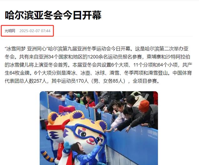 (信源:光明网2025年2月7日—哈尔滨亚冬会今日开幕)