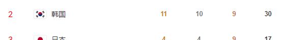 最终,截止到现在韩国一共获得了30枚奖牌,其中11枚金牌、10枚银牌、9枚铜牌。
