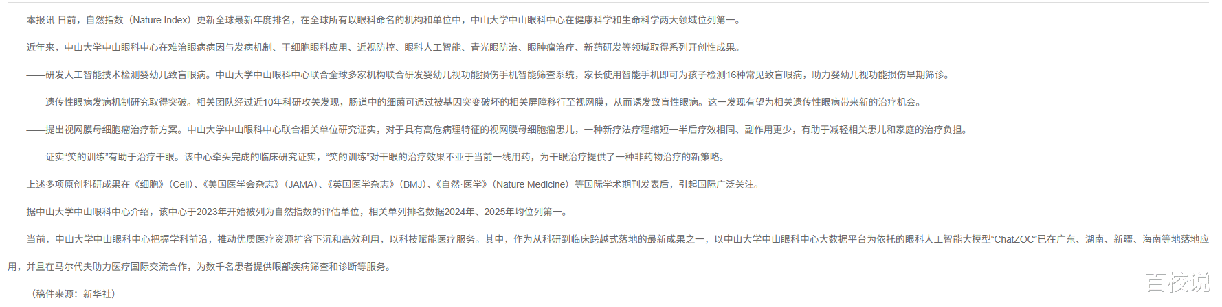 科研竞技场:从眼科革命到飞行汽车中山大学用“笑的训练”攻克干眼症,成果登上《JAMA》;研发的婴幼儿眼病手机筛查系统,让家长用APP就能检测16种致盲疾病,技术落地马尔代夫。