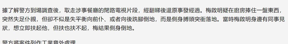 梅启明,这个名字在娱乐圈外的知名度,恐怕不亚于任何一位当红明星。只不过,他的“出名”方式有些特别。最近,他又因一场“工伤”索赔案上了头条。事情是这样的:梅启明在一家餐厅工作时摔倒,声称自己因工受伤,要求赔偿。然而,法庭并不买账,判决他败诉,并要求支付诉讼费。监控视频显示,他摔倒时动作缓慢,疑似“假摔”。这场闹剧背后,究竟隐藏着怎样的故事?