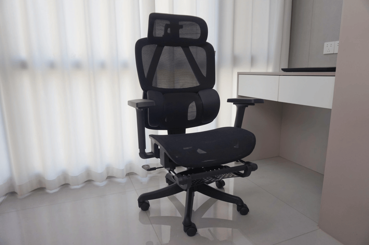 护腰性能:支撑系统是分区设计,专门针对腰部和骶骨做了独立支撑。坐上去能明显感觉到这两个部位有扎实的承托点,支撑跟着坐姿动,不会有顶腰的不舒服感。不过椅子本身不带头枕,习惯靠头放松颈部的人得另外配置。