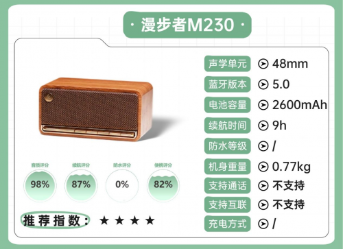 ▶音质方面,它内部配备了两个52mm全频喇叭,结合木质箱体的声学优化特性,有效减少了共振和杂音,呈现出均衡且清晰的音效表现。