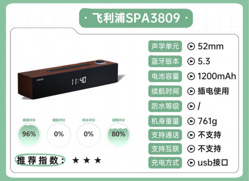 ▶这款蓝牙音箱在外观上别具一格,采用了细腻的木质箱体结构,不仅提升了视觉质感,还融入了数字时钟屏和手机支架的实用功能,极大增强了日常使用的便利性。