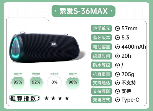 ▶不同于同价位其他蓝牙音箱会出现连接不稳定、延迟高等问题,它搭载了最新的蓝牙5.4芯片,连接稳定、抗干扰能力强,使得无线传输更加流畅,续航时间更是长达25小时,随时随地都能播放你喜欢的歌曲。机身小巧便捷的同时还具备IPX4防水等级,可以玩转室内、户外等各种场景,还有内置麦克风+TWS互联技术,售价才一百多,真的吊打市面上的千元蓝牙音箱。
