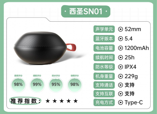 ▶音质方面,专门聘请了国外著名音乐大师针对西圣SN01音质表现进行百万次调试,配备了高成本的Hifi级DSP数字分频处理器,还有52mm的全频永磁气动大单元以及自研SurroundWave™ 3D音场算法,通过将声音分布在虚拟的三维空间中,为用户呈现出更加开阔的声音空间,仿佛置身于音乐现场或影院。同时还通过Xisem实验室内部严苛的声学技术验证,获得了“西圣声学金标”认证。