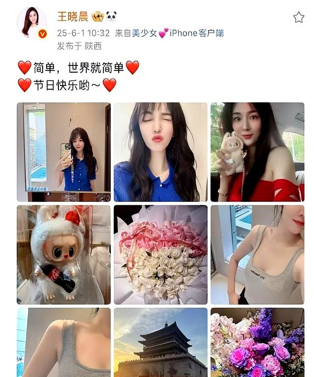 照片里,王晓晨穿得特别好看。有紧身吊带,显身材。还有红色抹胸裙,化了精致的妆,美得很。她还对着镜头嘟嘴亲亲,不知道是不是给老公看的。