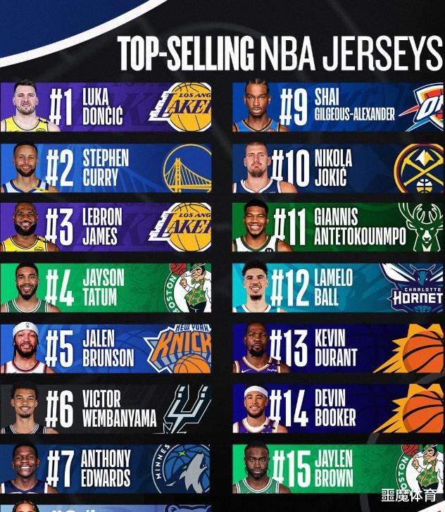 而更令人瞩目的是,球员周边商品销售榜上,达拉斯独行侠队的当家球星卢卡·东契奇力压勒布朗·詹姆斯和斯蒂芬·库里,荣登榜首! 这绝对是本赛季最令人惊喜的消息之一。