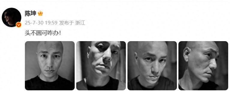 最引起争议的是照片中明晃晃的光头,配上陈坤的文案“头不圆可咋办?”尽显真实。