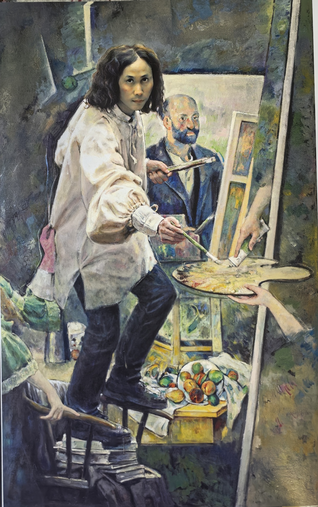我曾经三次在李自健美术馆的展厅里欣赏到戴平均的作品了,第一次是在2023年末的“中国当代写实油画大展”上,第二次是在2024年10月的“李自健美术馆馆藏作品展”.2025年10月的“中国写意油画大展”上,身为策展人的李自健又将它们“搬”了出来,画作名曰:《被遗忘的苹果》《海棠花开》,画家介绍里赫然写着的是:戴平均,湖南平江人,国家一级油画师,湖南省美协油画艺委会副主任。