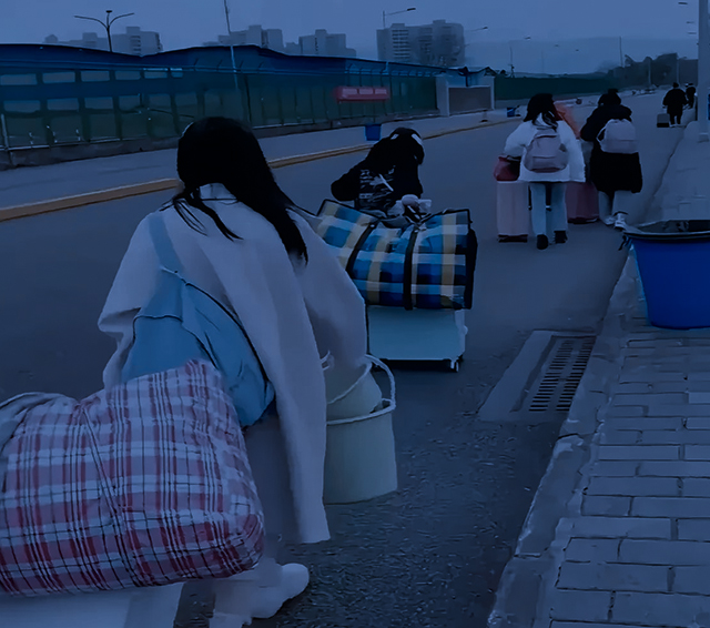 那几个人下了车就各自走散,大巴车也开走了,只剩下一个女孩在那里,身旁还放着一个大袋子,正在东张西望,应该是在等什么人来接她。
