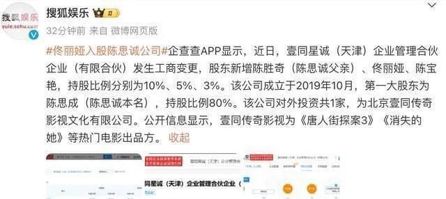 据悉,佟丽娅已经入股了陈思诚的公司,成为了公司的股东之一。