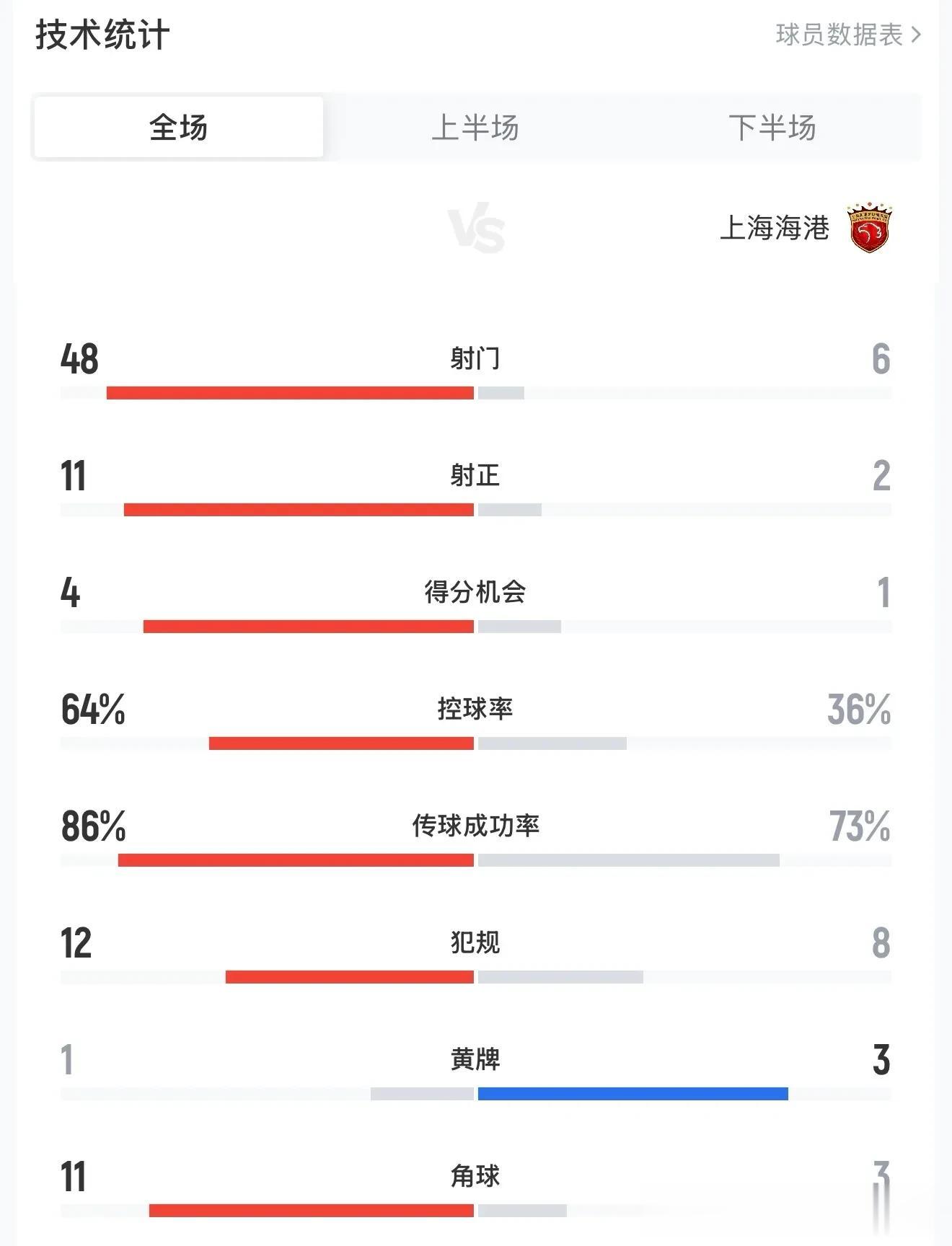 对方射了48次,我们6次,控球率他们将近七成,数据摆在这里,整场比赛我们绝大部分时间被压在自己半场,这就是比赛的真实情况,没什么好遮掩的,柔佛很强,他们是马来西亚的霸主,状态正火,这是事实,但我们是上海海港,我们对自己的要求,不能只是“少输当赢”。