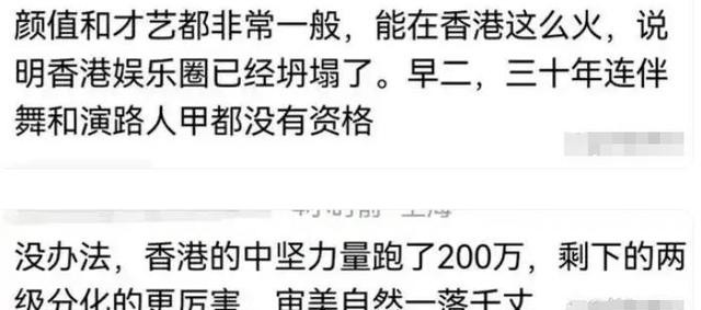 之后更是表示:怪不得内地13亿人都会耻笑香港,更有许多香港娱乐圈“已死”的言论。