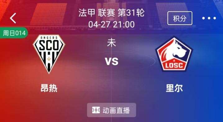 周日 014 法甲:昂热VS里尔