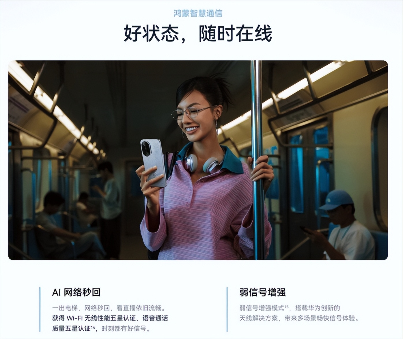 用的值,体现在华为nova 14活力版对日常使用痛点的精准解决。早晚高峰通勤时,地铁、电梯等信号盲区让人头疼不已。但nova 14活力版搭载的鸿蒙智慧通信,凭借AI弱网秒回和弱信号增强技术,即便在极端环境下也能保持通话、上网和定位的稳定,让你告别“信号焦虑”。夜间休闲时,湿手触控功能让你在厨房边看食谱边操作手机,毫无压力。而SGS五星抗摔认证和IP65级防尘防水,更是为手机提供了全方位的保护,耐用性满分。