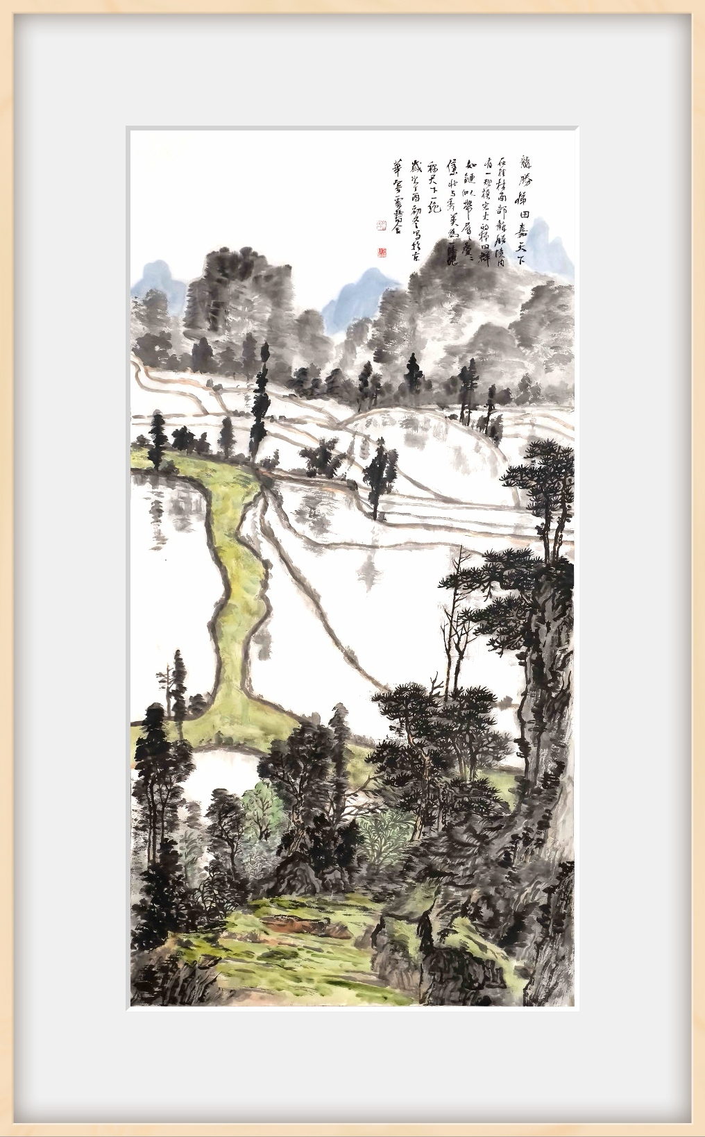 他用画笔诠释着对自然的热爱与敬畏,每一幅作品都是他与自然对话的见证。在他的山水世界里,我们能找到心灵的慰藉,忘却尘世的纷扰,沉浸在那片宁静与祥和之中。
