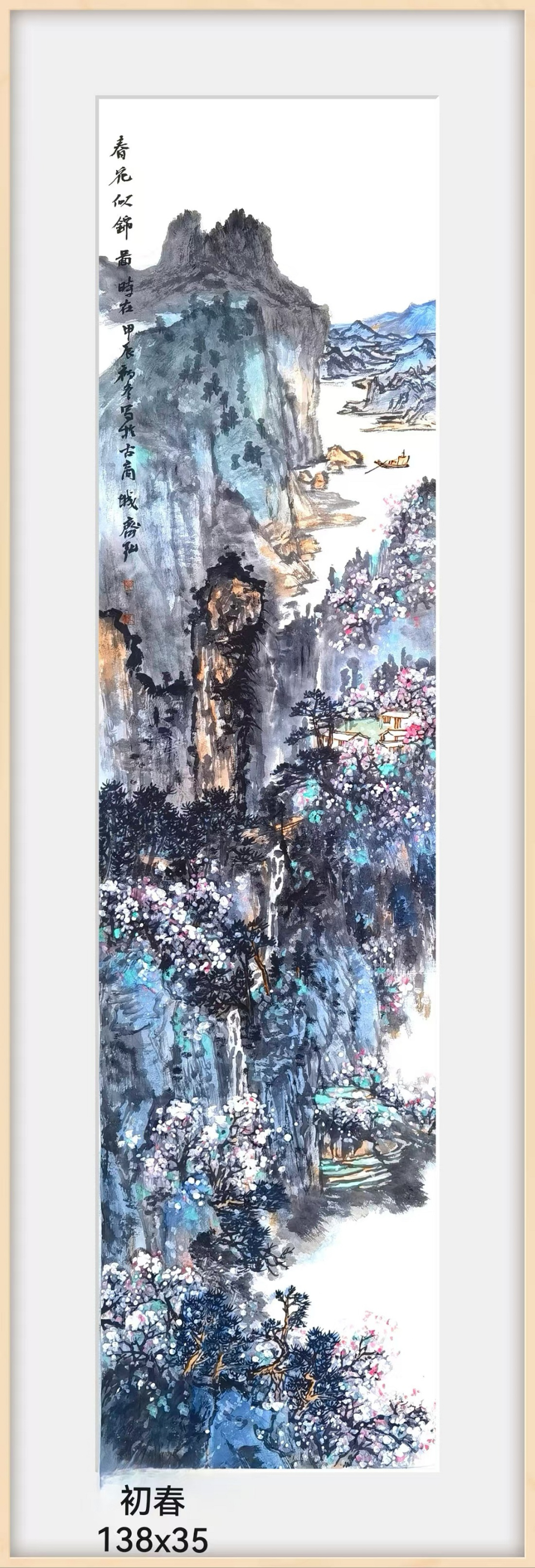 齐宏伟先生的笔墨,似灵动的诗韵,在宣纸上跳跃、舞动。观其画作,线条犹如山间蜿蜒的溪流,自由且富有韵律,时而轻盈婉转,勾勒出初春山花的烂漫,如《初春》中,繁花似锦,似少女羞涩的红晕,点缀在陡峭山崖间,墨色与色彩交融,恰似春日里那一抹温柔的梦;时而又刚劲有力,似冬日里凛冽的寒风,在《瑞雪》中刻画出山石的嶙峋与坚韧,白雪皑皑下,是大地沉睡的静谧与深沉。