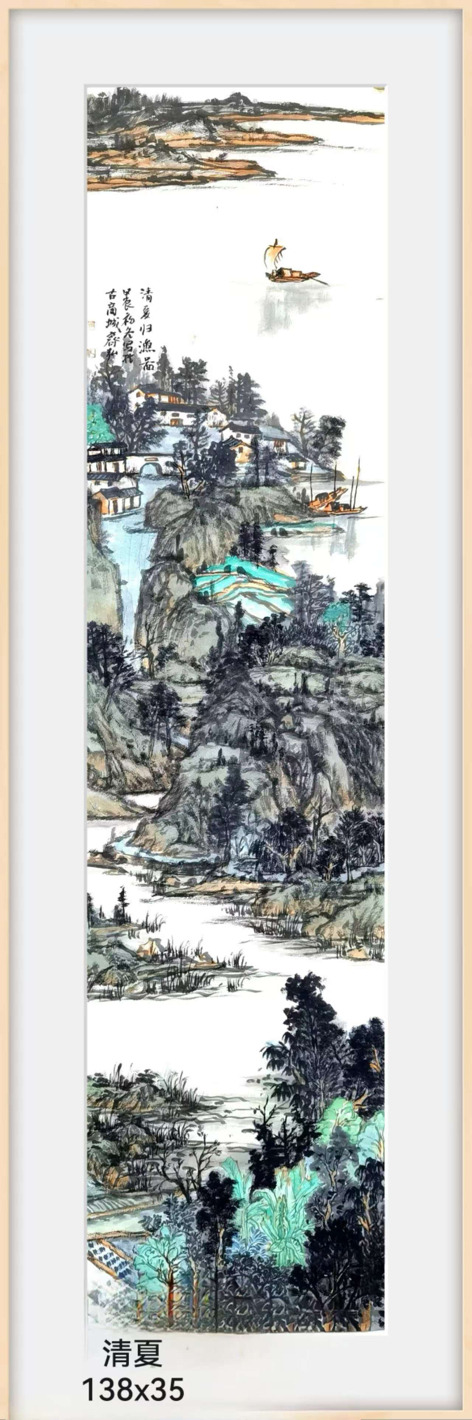 色彩的运用,更是齐宏伟画作的一大妙处。他以墨色为基,施以淡彩,如《清夏》中,青绿的山水间点缀着几抹灵动的色彩,似夏日的清风,拂去心头的燥热;又似夜空中闪烁的星辰,为画面增添了几分神秘与浪漫。墨与色的交融,如同诗中的平仄与韵律,和谐而美妙,营造出一种空灵、悠远的意境。