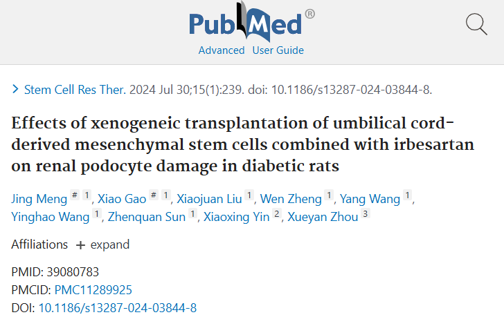 临床研究动物实验显示协同效应:2024年徐州医科大学团队在《Stem Cell Research & Therapy》发表研究,对比脐带间充质干细胞(UC-MSCs)、降压药及两者联合治疗对2型糖尿病肾病大鼠模型的效果。结果显示,联合治疗在减轻蛋白尿、保护肾小球足细胞及延缓肾纤维化方面显著优于单一治疗,提示未来临床中联合用药可能获得更好疗效。