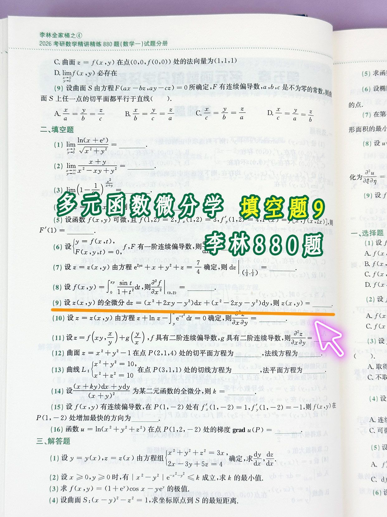 2026李林考研数学精讲精练880题数学一----高等数学----第五章多元函数微分学及其应用----基础题---填空题9