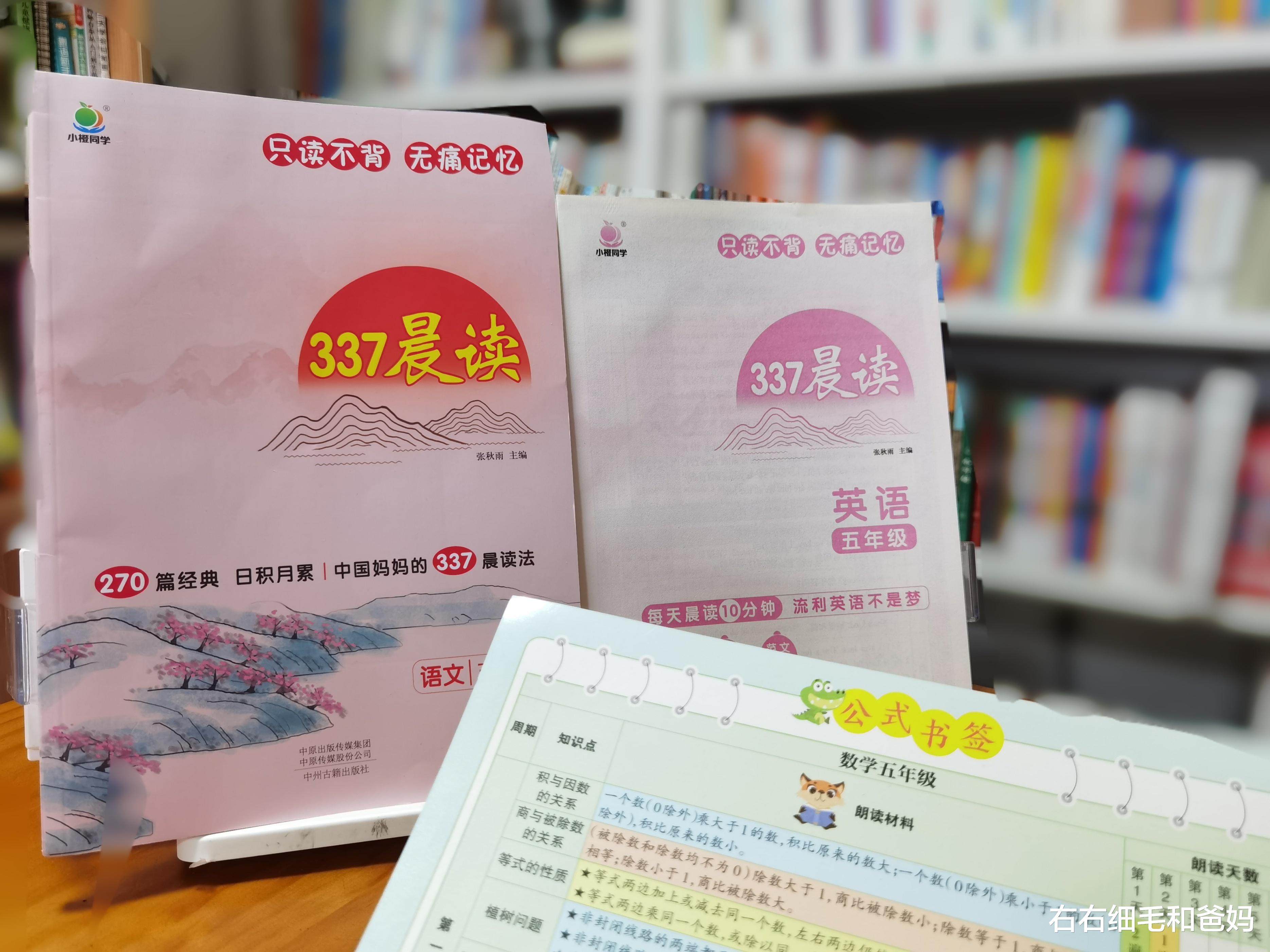 小军妈妈给孩子选的精读书籍是一套《337晨读》,一年级一套书籍,1-6年级要背诵的知识,轻松拿捏住。