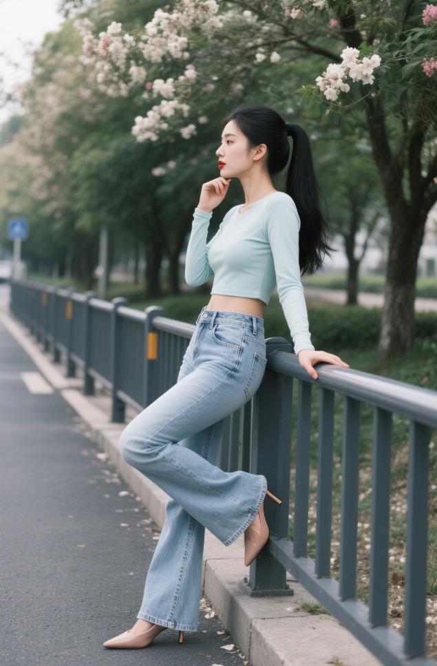 低腰喇叭牛仔裤自身带有复古的韵味,穿上它呀,能够即刻打破那种传统的牛仔裤样式,而且会让你于人群之中格外显眼,轻松地脱颖而出。