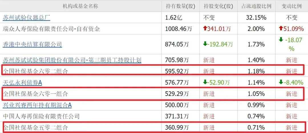 最受社保基金青睐,三家社保组合合计持有1486万股,占流通股2.94%。公司检测服务覆盖航天、军工等高端领域,上半年净利润增长14.18%,社保基金的扎堆,凸显对高端测试服务国产化的重视。