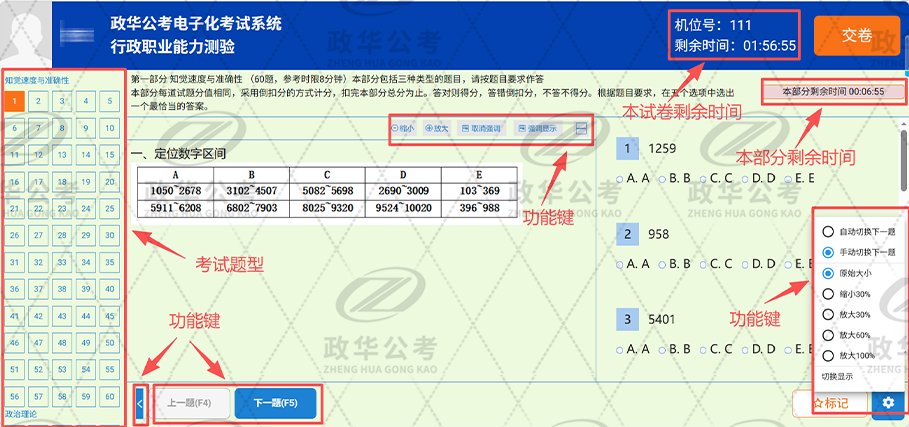 政华公考机考系统最大的优势,就是高度还原公务员机考真实场景,让你提前适应考场节奏,减少陌生感带来的失误: