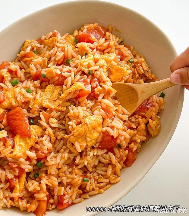 米饭:1碗、鸡蛋:2个、番茄:1个(中等大小)、葱花:适量、蒜末:适量、食用油:适量