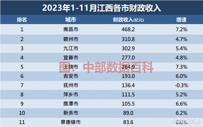 2023年1-11月,赣州一般公共预算收入为310.83亿元,增速为4.7%,九江一般公共预算收入则是302.9亿元,增速为5.4%。虽然赣州和九江的排名没有变化,但九江的增速要稍高于赣州,这让九江有看到了攀升至第二的希望。