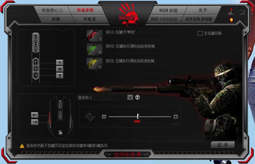 说实话,笔者还是第一次使用到功能如此丰富的驱动软件,比如可对游戏的狙击模式进行设置。