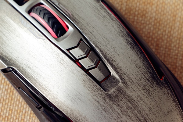 鼠标主体塑料材质经过银灰色的金属漆喷涂后,很有金属的质感,笔者一开始还以为是金属材质。