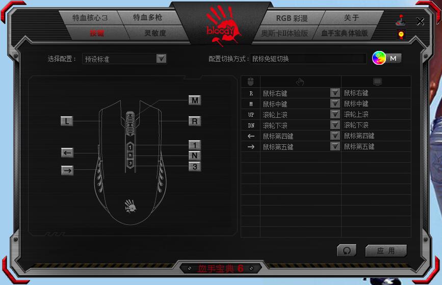 在血手宝典上,每个用户都可以对鼠标8课按键进行自定义设置。