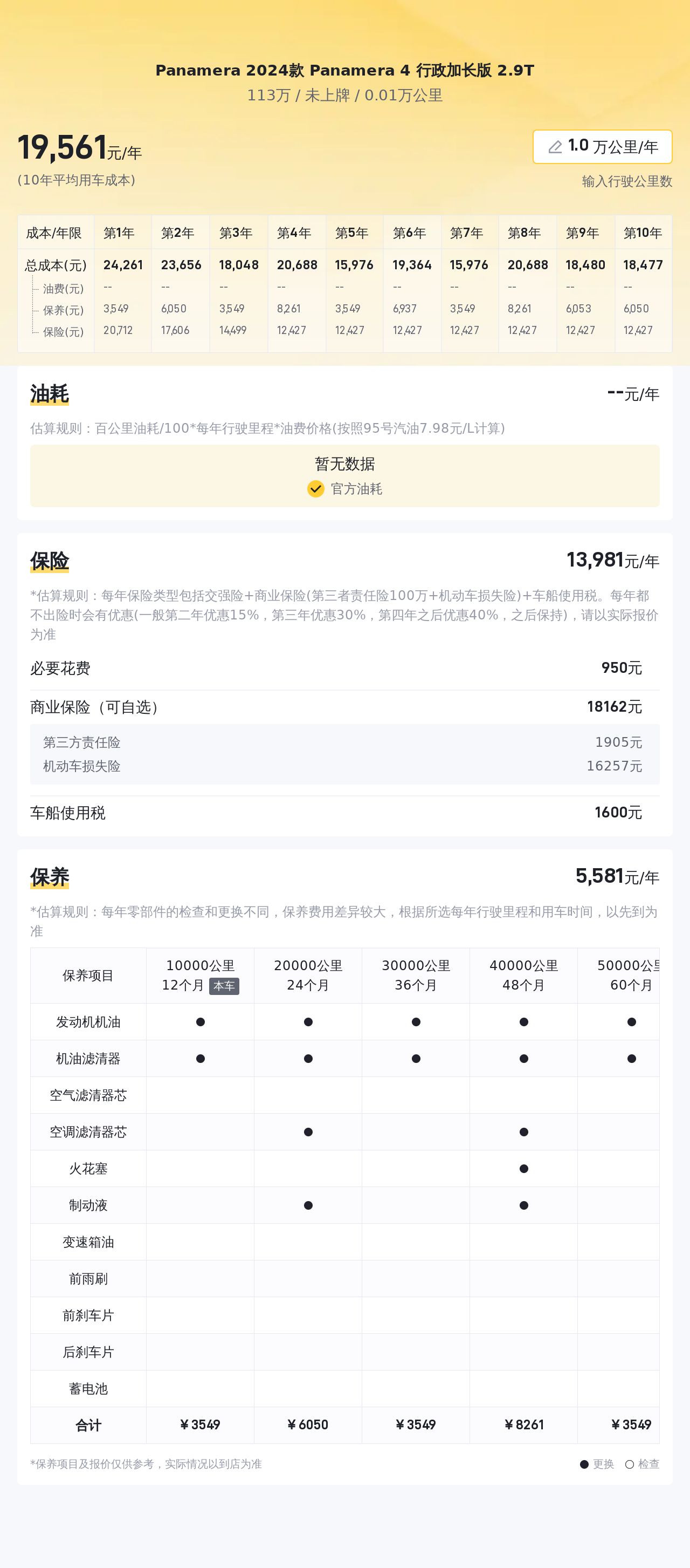 除了市场行情,您可能还会关心这款车的用车成本。我们估算,按照每年 2 万公里的行驶里程来计算的话,未来 3 年的用车成本大约在 41,380 元左右。这个金额当然还是要根据车辆实际使用情况和保养情况来确定的。