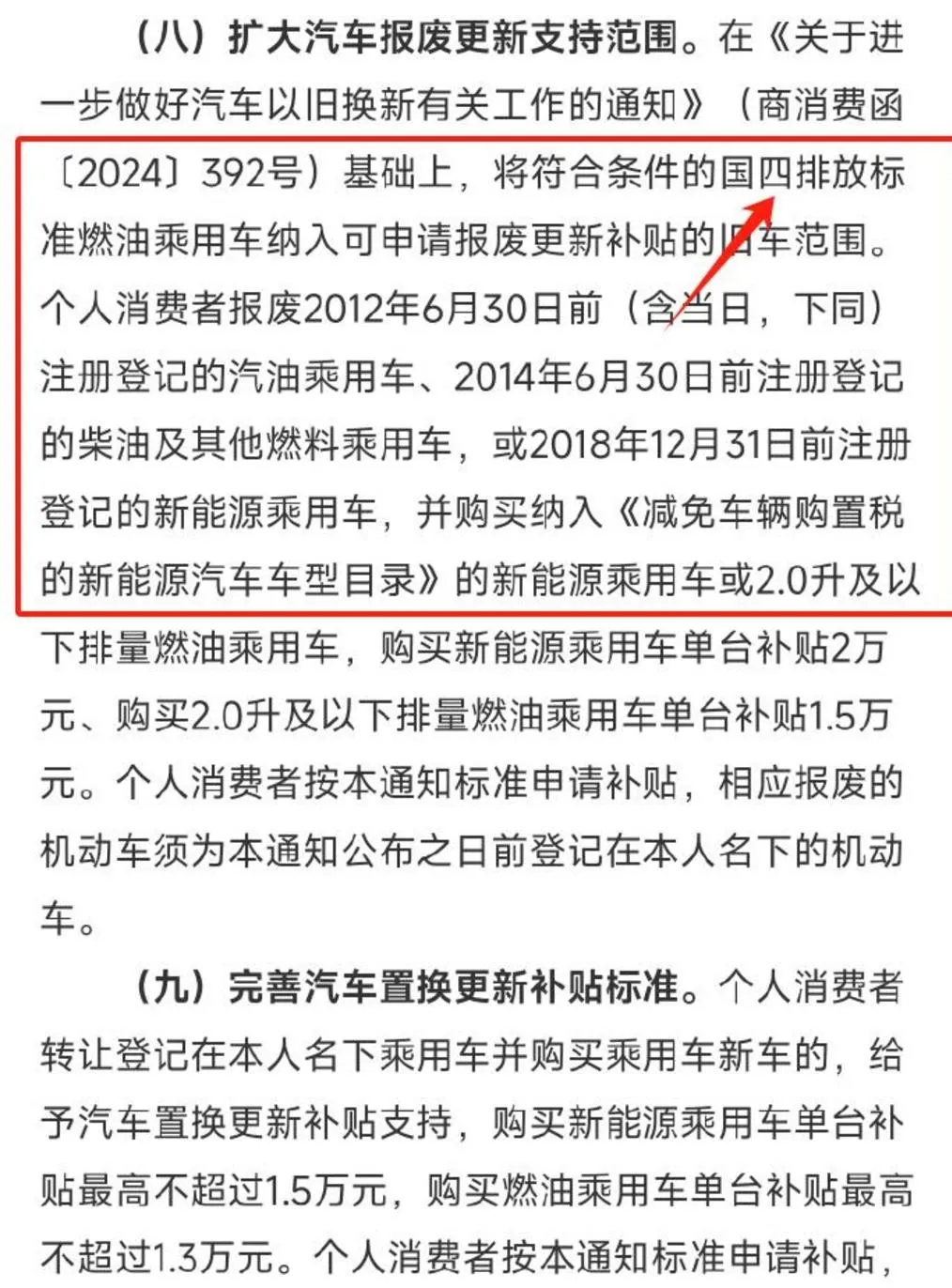 而且补贴范围比去年还扩大了,连部分国四排放的车都能享受补贴了,这政策够给力吧?