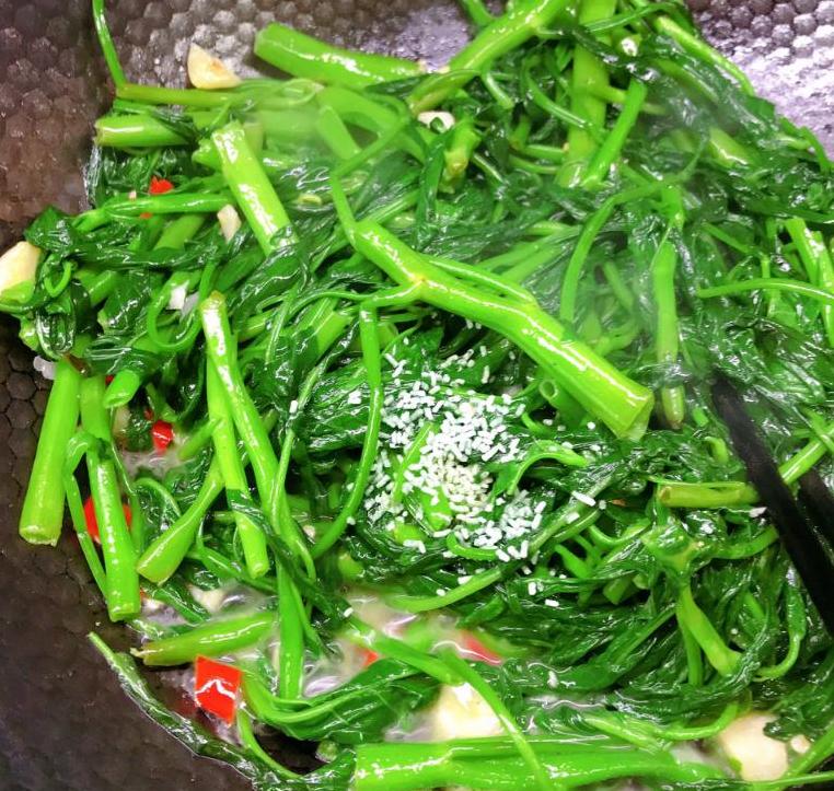 尝一口,翠绿又脆嫩的空心菜,口感特别棒。