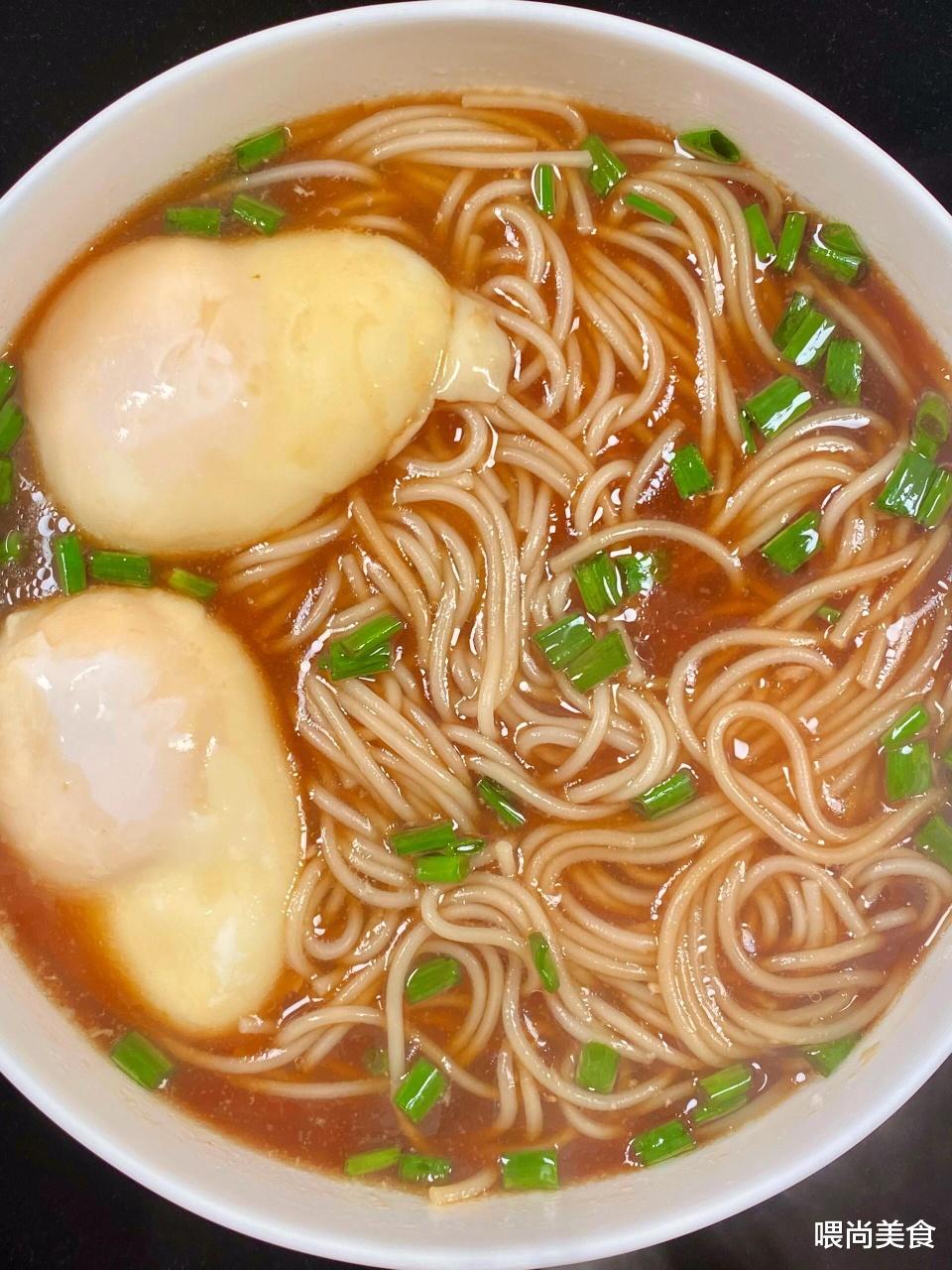 3、开中小火,继续煮3分钟,将鸡蛋捞出备用。接着,把面条放入锅中,煮熟后捞出,放入之前调好汤底的碗中,舀入适量煮面汤,再放入煮好的鸡蛋,一碗热汤鸡蛋面就大功告成。