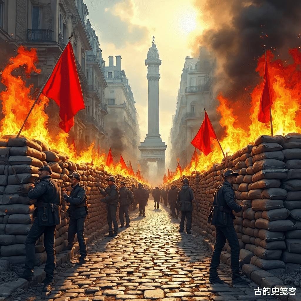 1871年3月18日,巴黎工人用铺路石、家具和沙袋在蒙马特高地筑起街垒。这种“城市游击战”的空间实践具有双重意义: