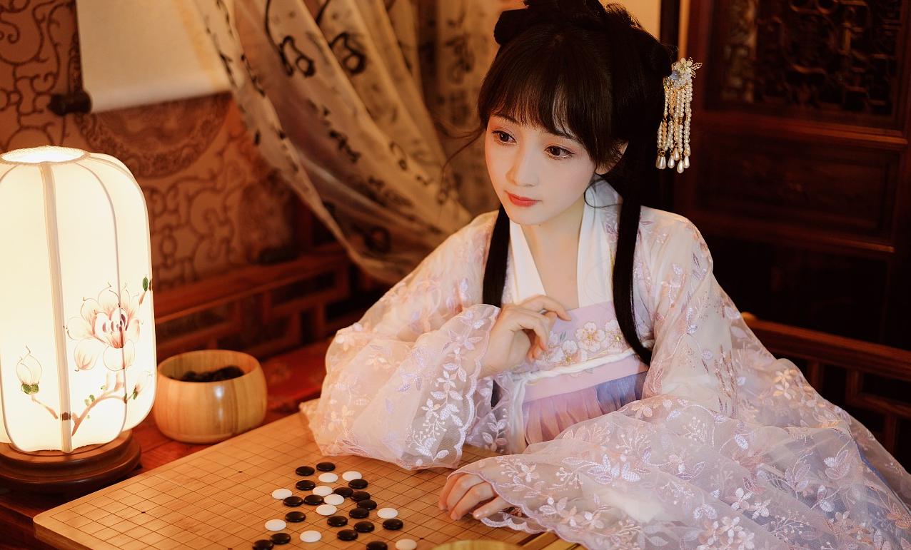 一场夜宴上,主人的薄纱袖轻轻划过酒杯,灯光下晃动的影子勾勒出她的笑脸。