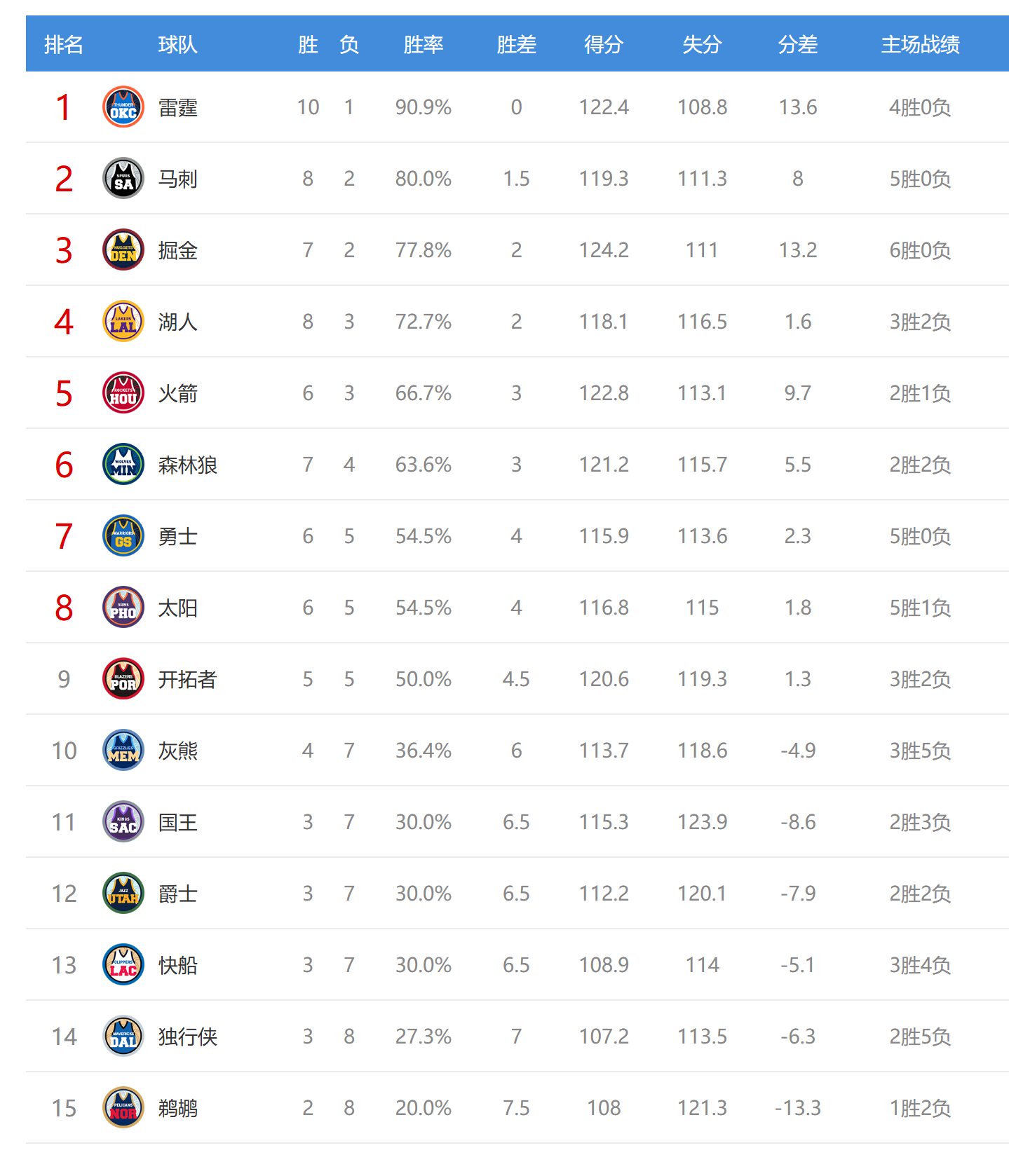 北京时间2025年11月11日,今日NBA有9场比赛,湖人、快船、开拓者、马刺、独行侠、森林狼、太阳、爵士、鹈鹕参与其中,赛后西部排名变成了变化,6队排名发生互换。