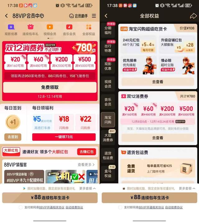 尤其对于淘宝的核心人群88VIP来说,淘宝闪购的加入进一步提升了这个会员体系的含金量。