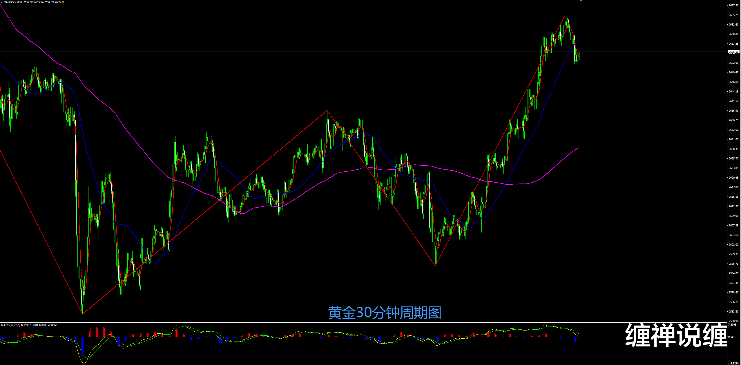 黄金30分钟上涨延续,如果继续突破2665,那么黄金30分钟上涨延续,如果黄金不再突破2665,那么黄金可能延续回落,然后走震荡重新选择方向;不过黄金只要不破2646,黄金30分钟还是在上涨中;黄金短线回撤2650附近支撑上涨,黄金2655短线可以继续多,突破2665,黄金上涨延续。黄金上涨延续,短线回撤支撑多!