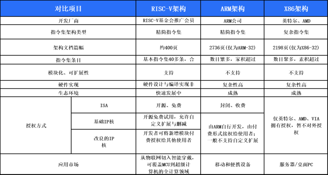 x86和ARM固然强大,但它们都是传统封闭架构指令集,所以基于这两者设计芯片是需要获得授权,有受制于人的风险。