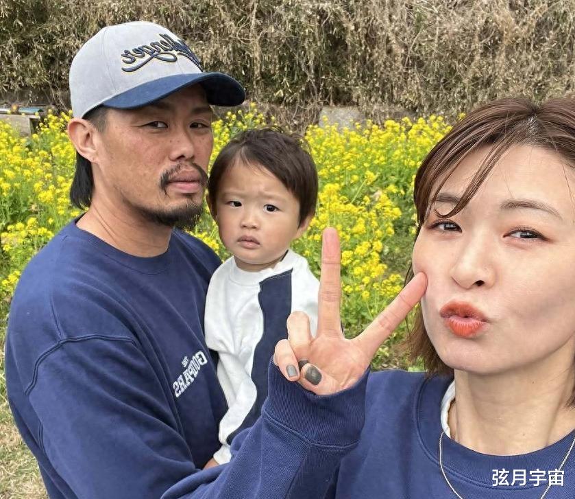 木村纱織在个人社交媒体上晒出了一张全家福照片,瞬间引爆了网络。照片中,一家三口在一片开阔的野外,背景是金灿灿的油菜花田和一些枯萎的茅草,构成了一幅温馨而略带萧瑟的画面。木村纱織身穿一件朴素的蓝色上衣,对着镜头比出了胜利的手势,神态轻松而自然。她的丈夫日高裕次郎,同样穿着蓝色上衣,戴着一顶帽子,略显凌乱的胡须遮掩不住他脸上洋溢的幸福。他怀抱着他们的儿子,小宝宝穿着蓝白相间的外套,看起来软萌可爱。