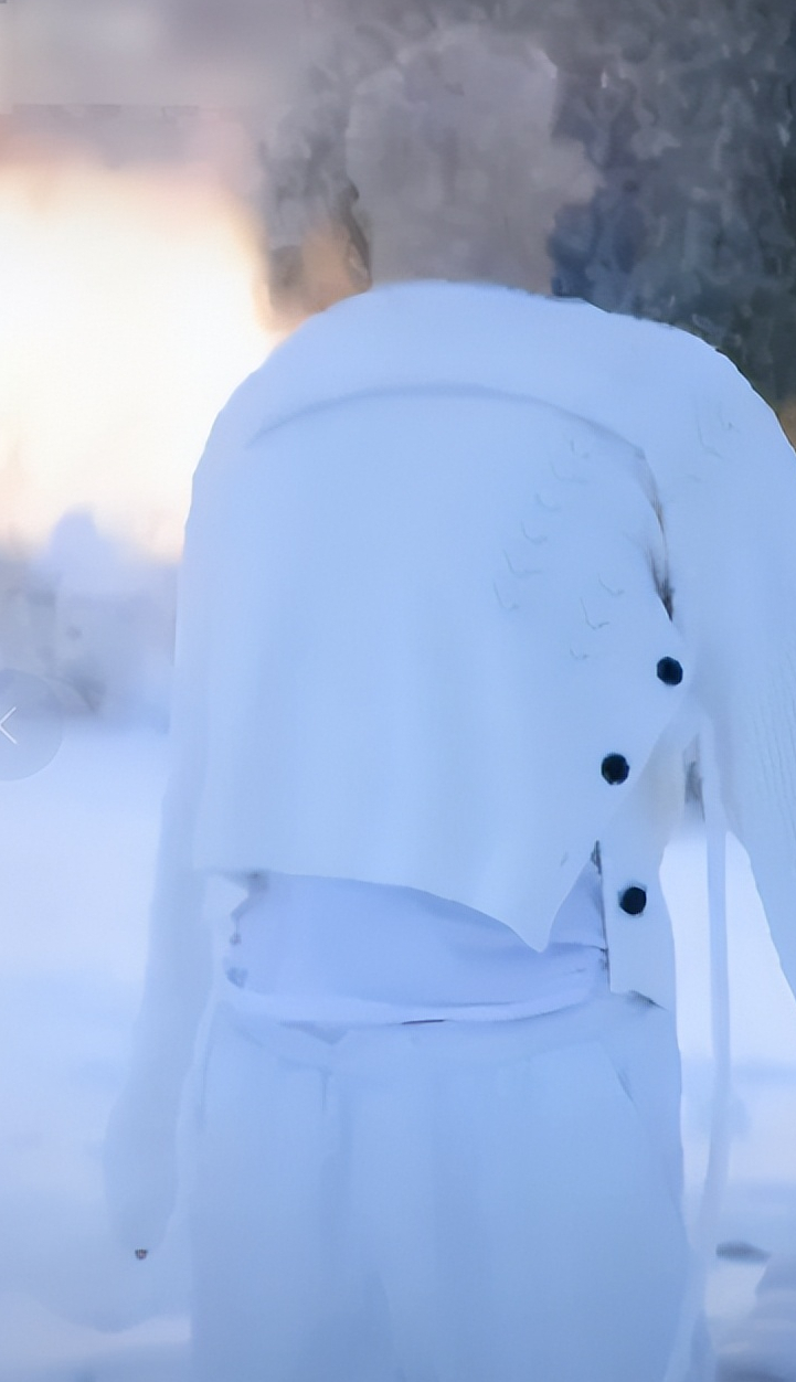 只见视频中的他,一身白衣,站在雪地里大喊:“我想你了”。