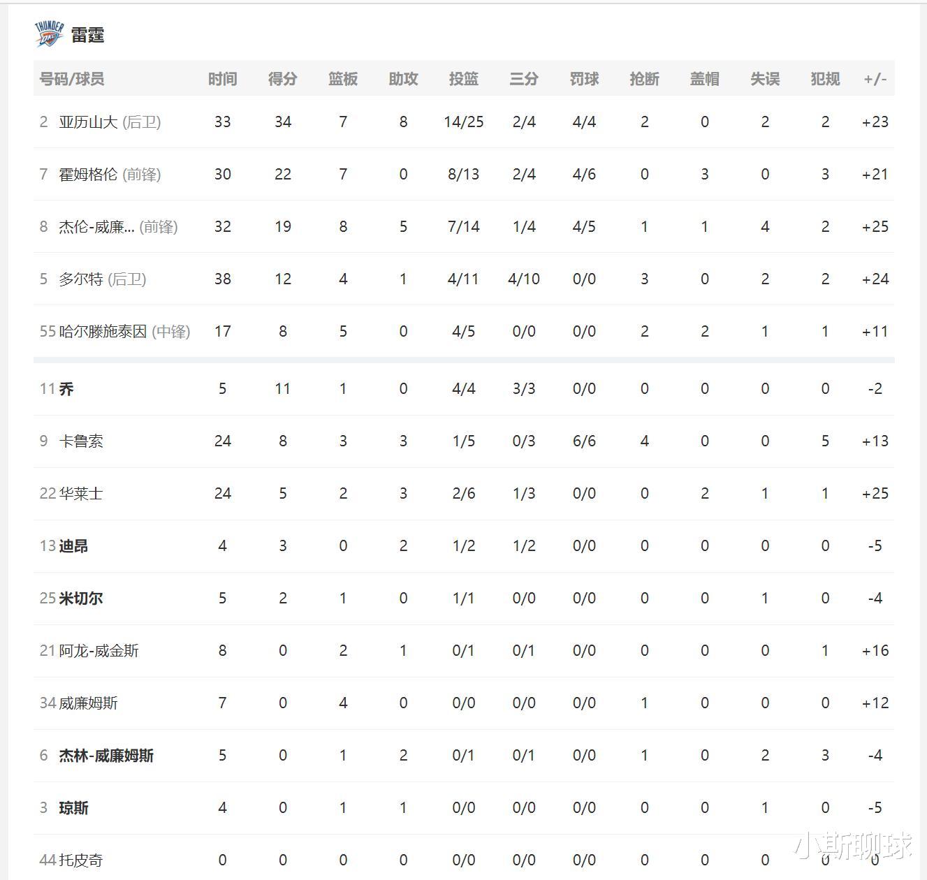 次节,森林狼的防守彻底崩盘,卡鲁索为球队屡次建功,雷霆在本节拿下39分,森林狼拿下23分,半场结束,分差已经来到了33分,雷霆65-32森林狼。森林狼半场失误14个,雷霆三少半场50分(历山大20分,杰伦-威廉姆斯15分,霍姆格伦15分),三人得分比森林狼全队得分还高。